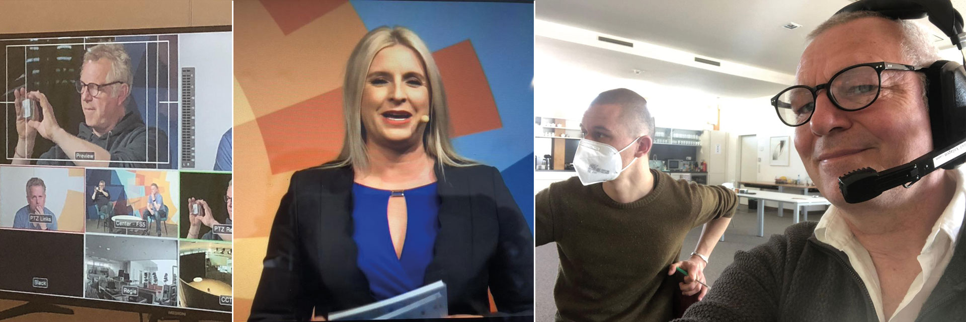 Als mittlerweile eingespieltes Team entwarfen wir ein neues Studio und bauten es in Österreich für ALDI Suisse / Hofer für eine Mitarbeiter*innen-Schulung auf, das wunderbar funktionierte. Während ein Sturm die Kommunikation in der ganzen Region zusammenbrechen ließ, sendeten wir mit einer Akku-Lampe weiter. Emanuel Koch, Dominik Munke rannten hinter den Kulissen, Thorsten Jekel unterstützte technisch aus Berlin und wir waren wenig später Dank all ihrer Genialität wieder in der regulären Sendung, ohne das Publikum eine Minute verloren zu haben.