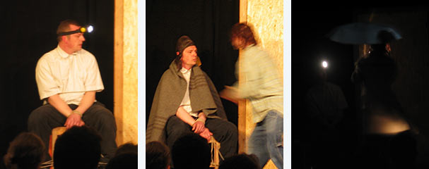 Bei der Premiere wurde das Stück so unglaublich real, dass ich (nachdem ich einige Zeit lang geknebelt worden war) wirklich unter Tränen meinen Text weitersprach und mein Gegenüber vollkommen unbeeindruckt in der Rolle und Situation blieb. Als Schauspieler war diese Vorstellung von der Art und Dichte her eine Sternstunde.